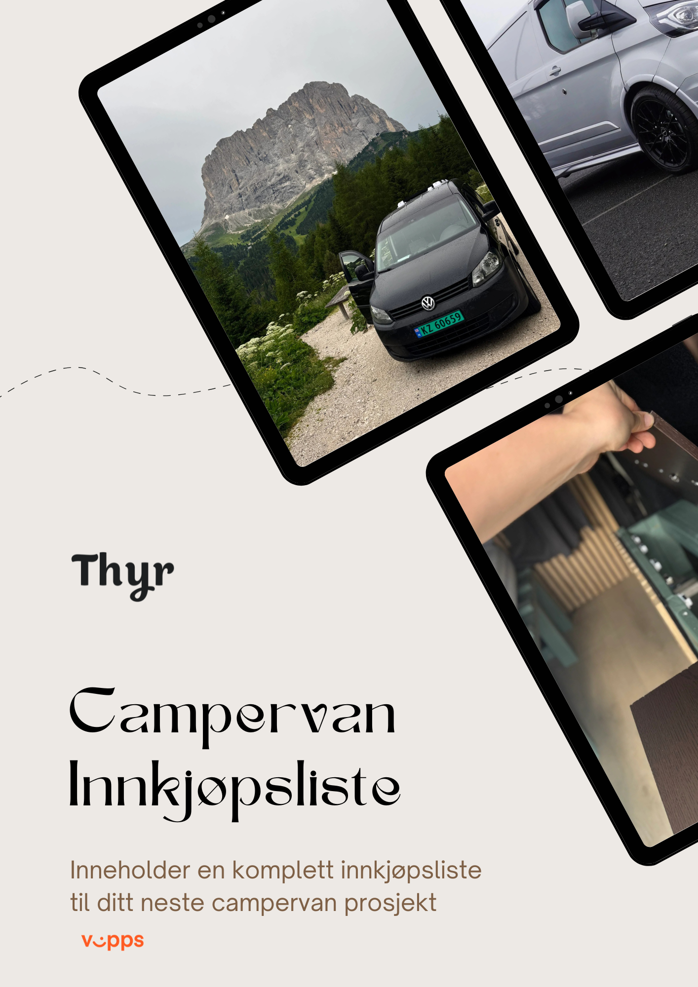 Thyr Campervan Innkjøpsliste er en komplett og gjennomarbeidet oversikt over alt du trenger for å bygge eller oppgradere din egen campervan. Listen er laget for både nybegynnere og erfarne van-byggere, og hjelper deg steg for steg med å sikre at du ikke glemmer viktige komponenter i prosessen.