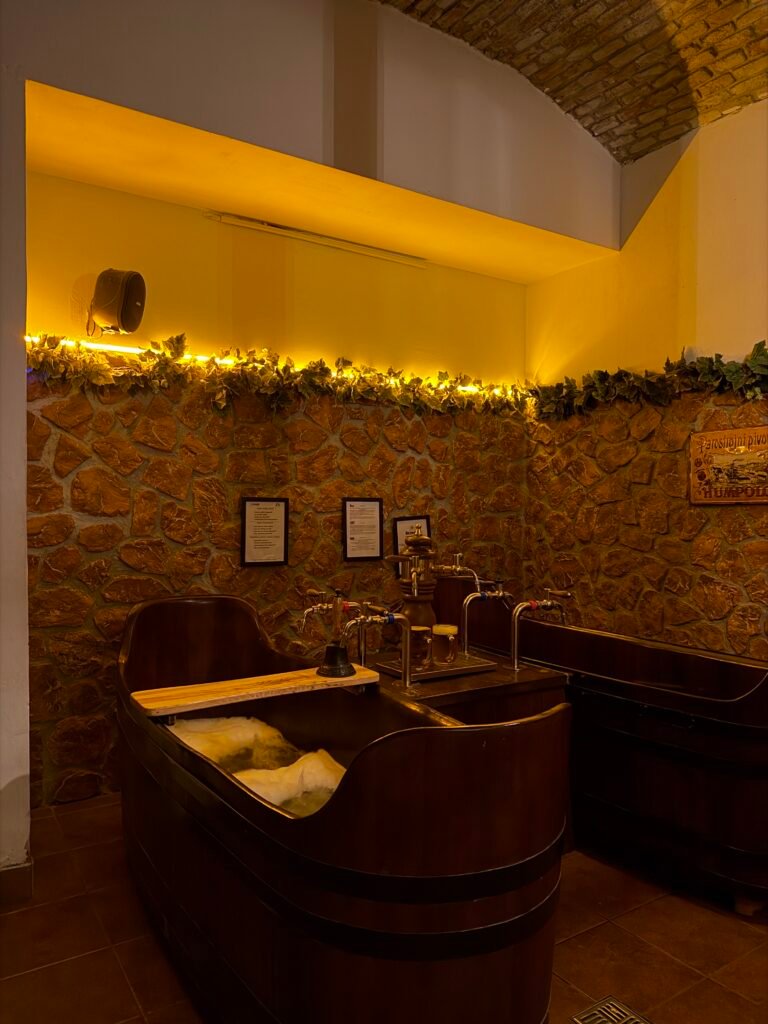 Noe av det mest unike vi gjorde i Praha var faktisk å bade i øl. Vi booket via GetYourGuide og dro til Beer Spa Bernard Prague.