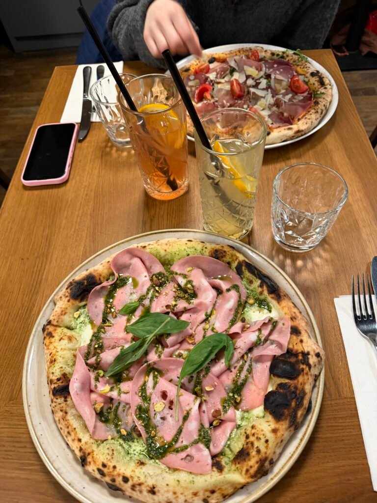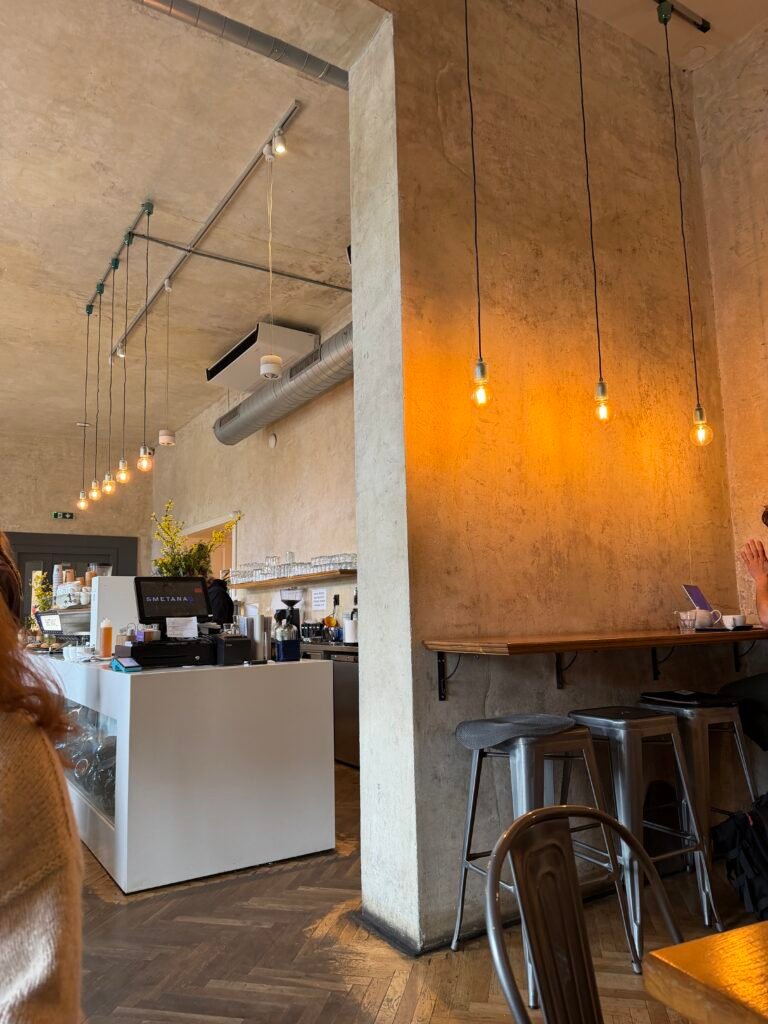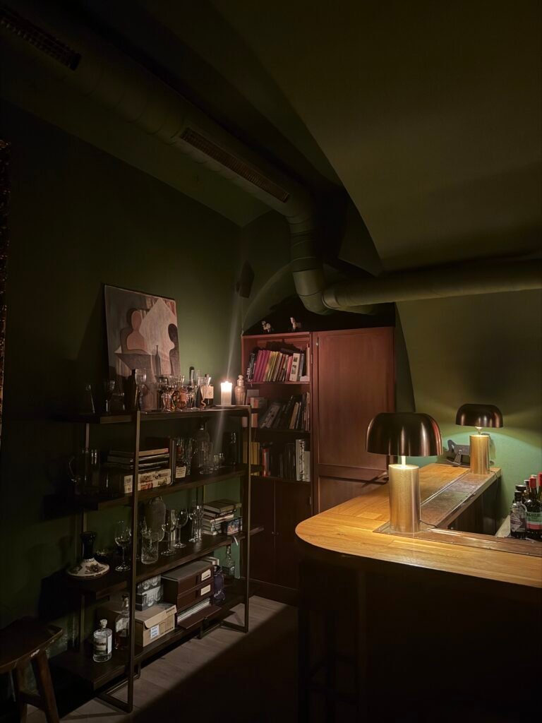 Stemningen er rolig med dempet musikk og lite folk, noe som gjør det til et veldig cosy sted å sitte og prate. Samtidig er det litt vanskelig å finne frem, så det føles nesten litt som en “hidden gem”.