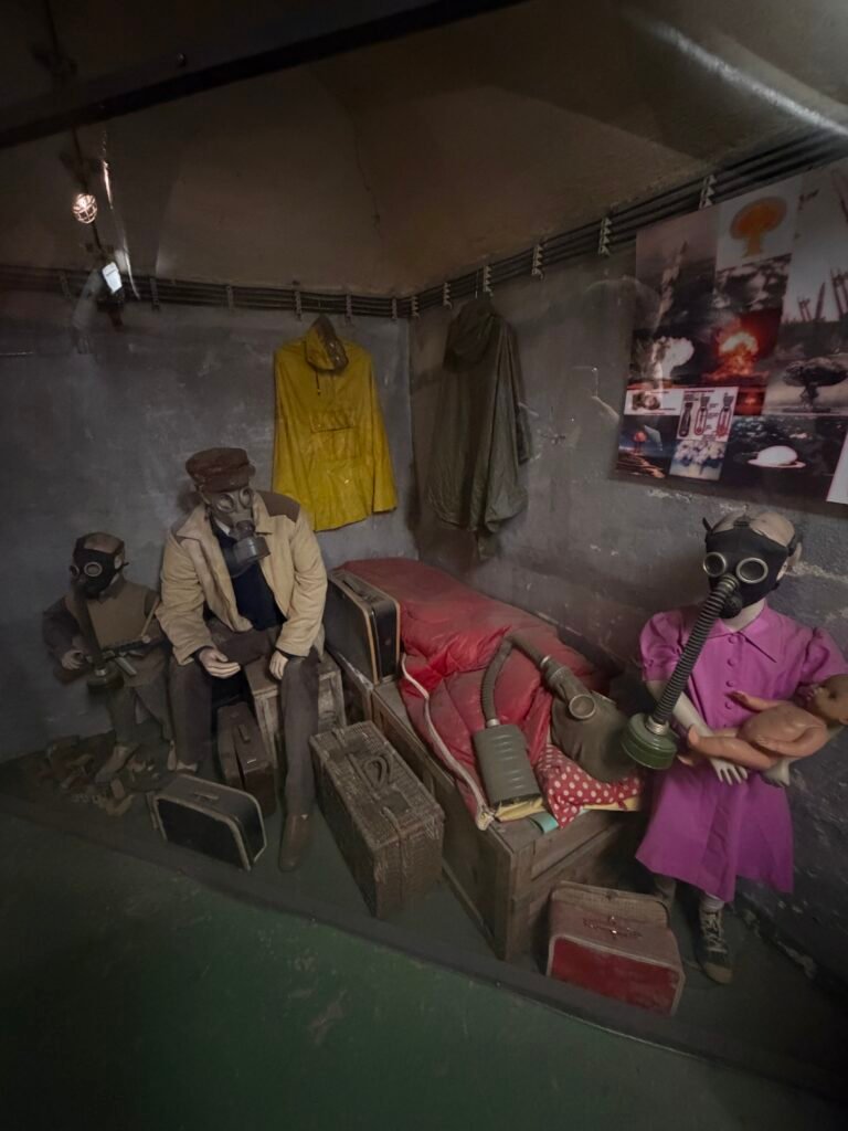 Høydepunktet er bunkeren, som ligger rundt 15 meter under bakken og ble bygget på 1950-tallet. Den er bevart med originalt utstyr, og gir et ganske realistisk inntrykk av hvordan man forberedte seg på krig. Du går gjennom flere rom, ser blant annet gassmasker og teknisk utstyr, og får forklart hvordan systemene faktisk fungerte.