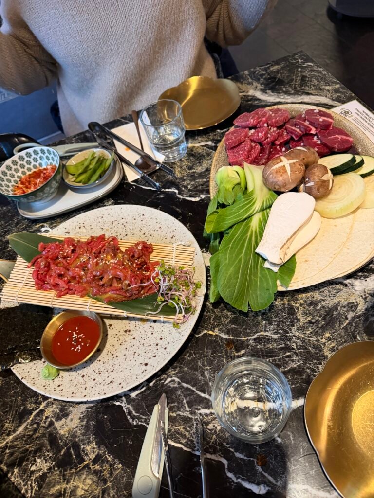 En kveld dro vi på koreansk BBQ på NUMARU Korean BBQ, hvor du griller maten selv ved bordet. Det ble litt mer enn bare en middag – mer en sosial greie – og er absolutt verdt å teste hvis du vil gjøre noe litt annerledes.