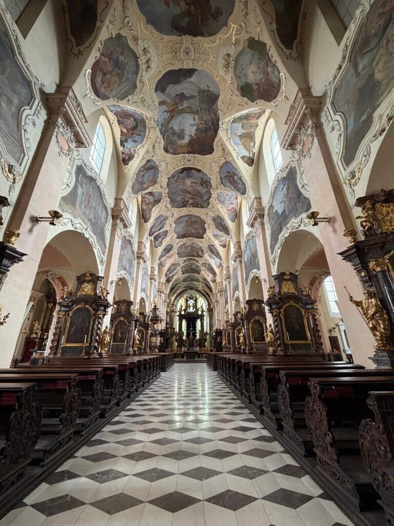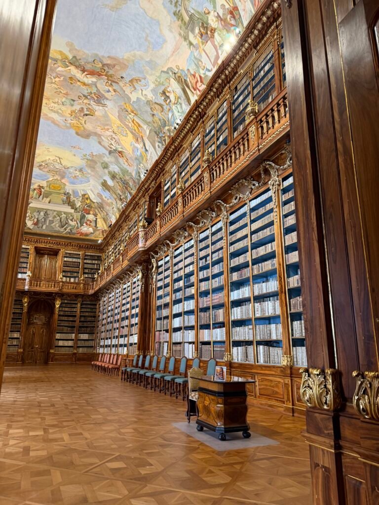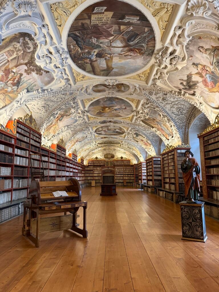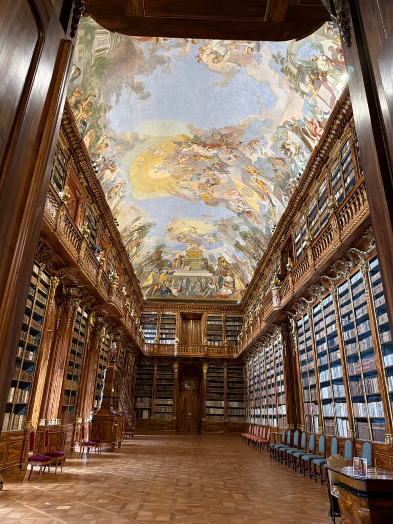 Vi var også innom Strahov Library, som er kjent for de vakre bibliotekssalene – et raskt stopp, men definitivt verdt det. Det kostet ca 90kr per pers for inngang, men det var det absolutt verdt! De har også et galleri inne i biblioteket, men det kostet ekstra for inngang der.