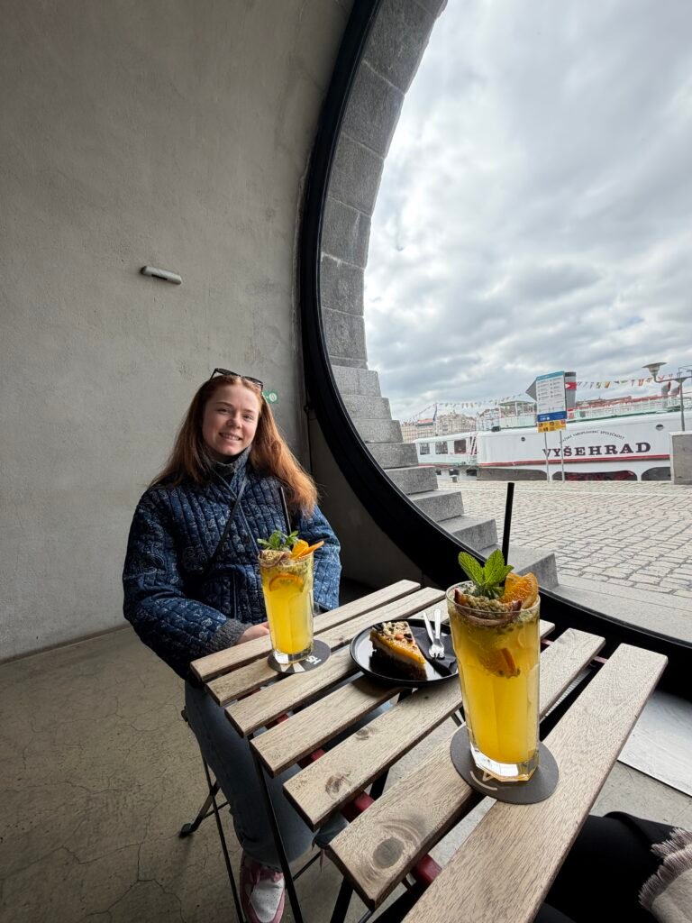 Vi spiste også lunsj på SmetanaQ Café & Bistro, som ligger rett ved vannet. Her er det først og fremst utsikten og stemningen som gjør det verdt det, ikke nødvendigvis at maten er det beste du får i byen.