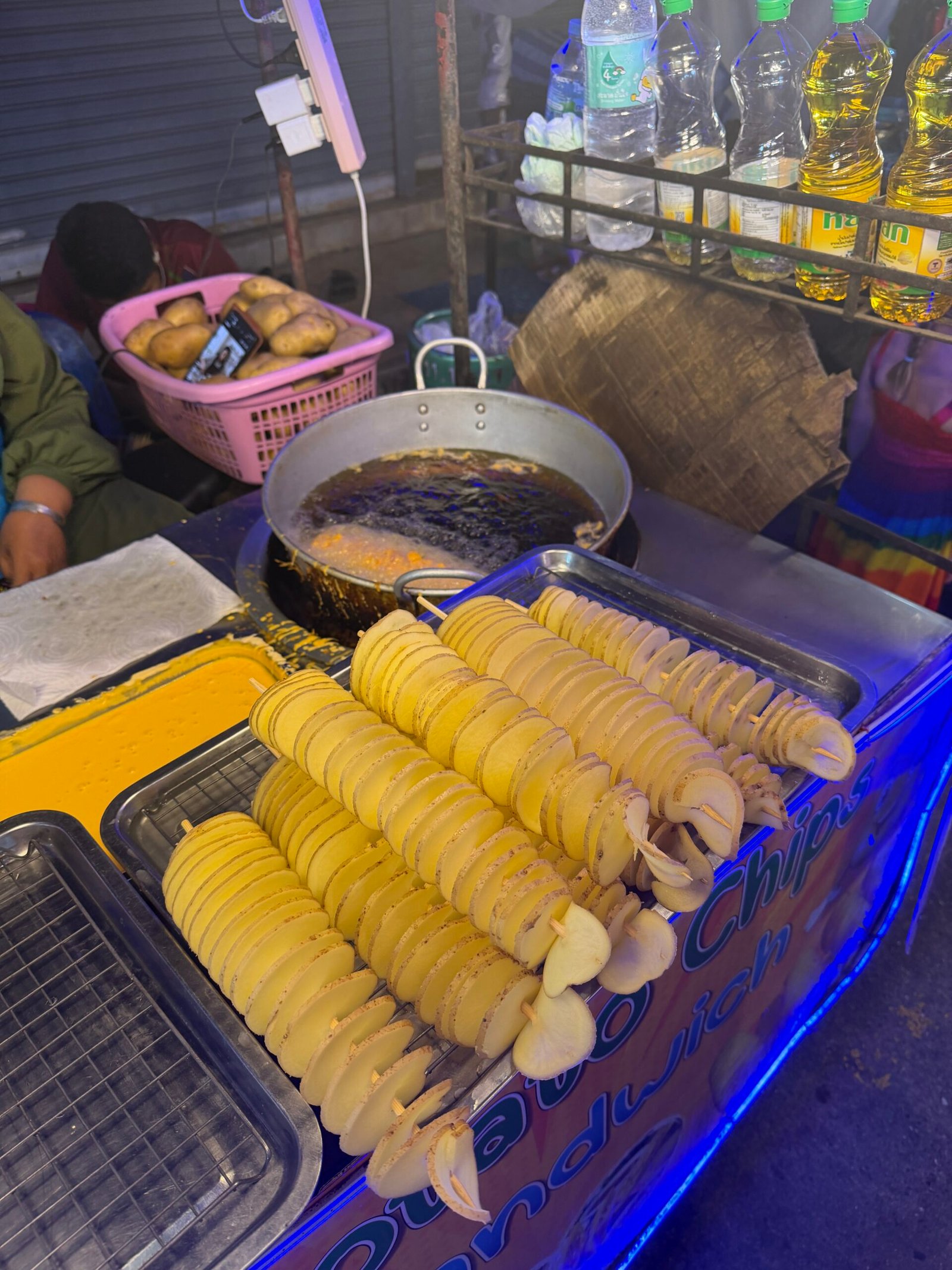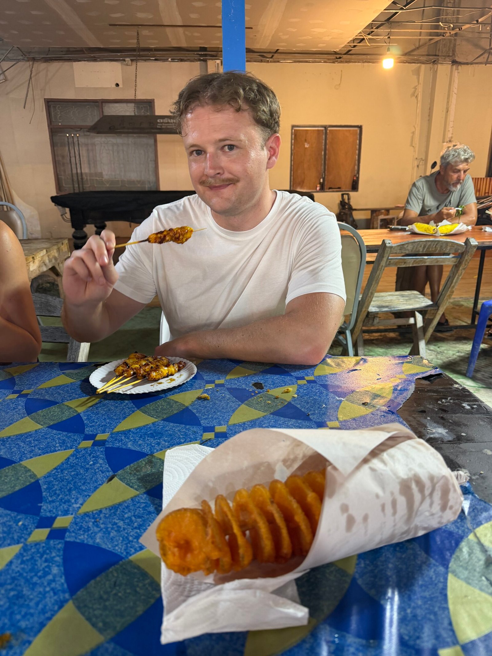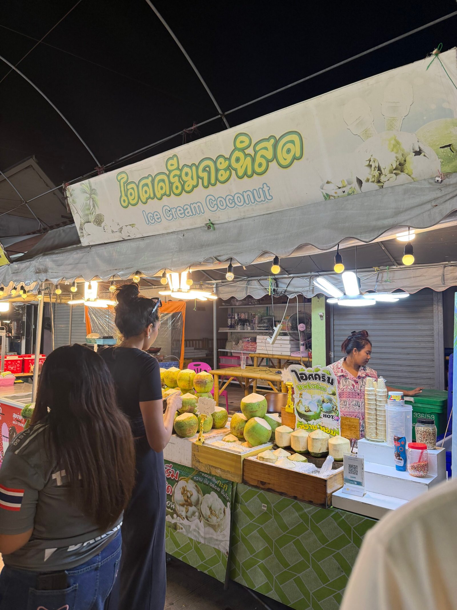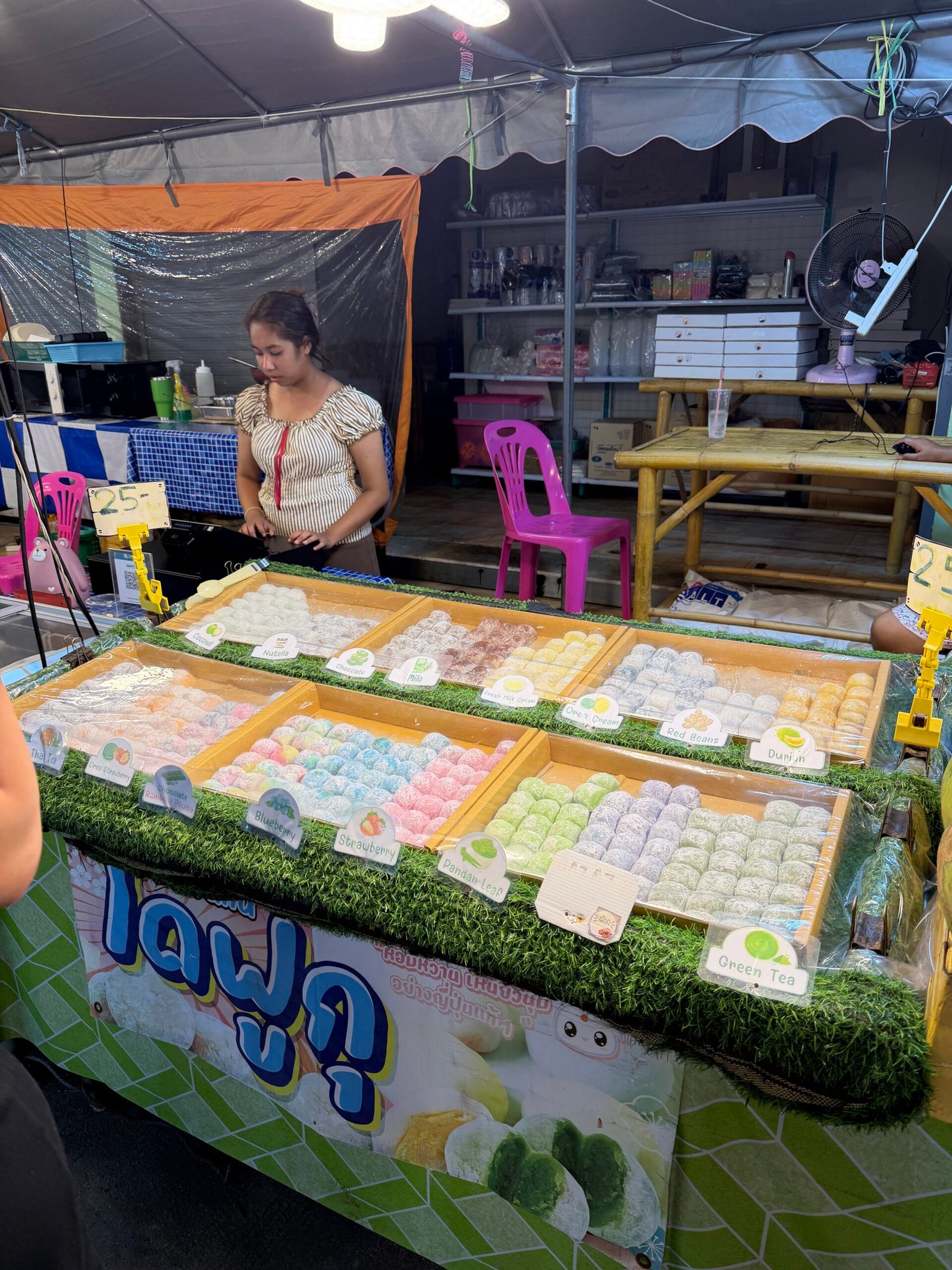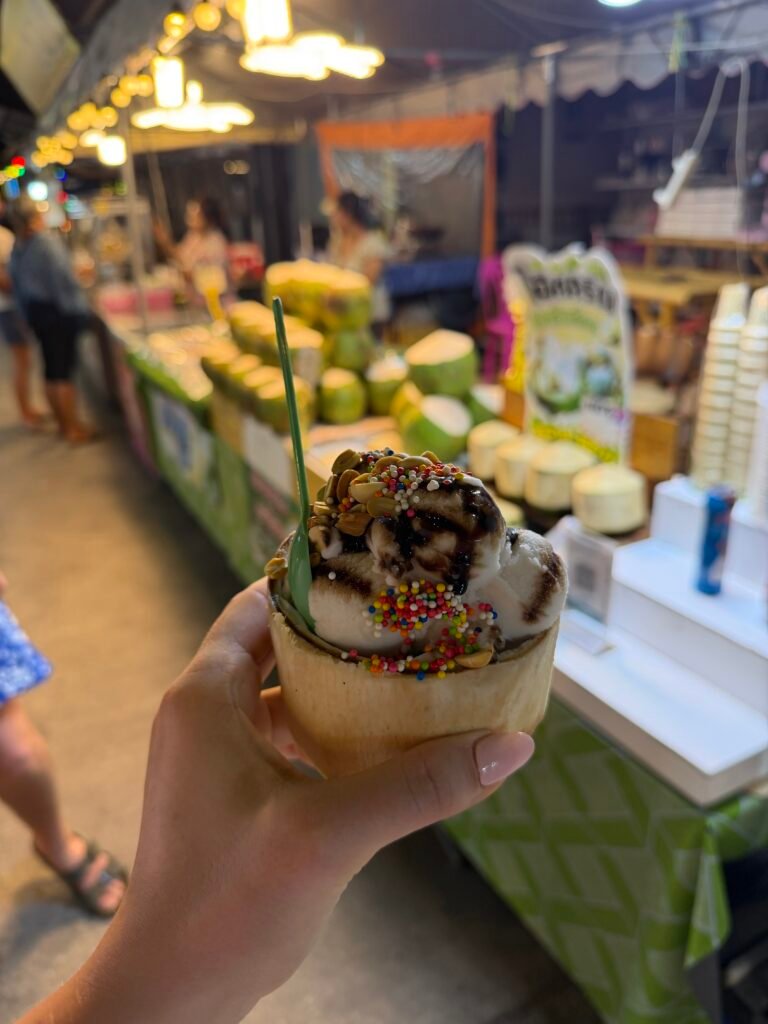 Her testet vi alt fra taco og pizza til det som faktisk ble favoritten: en helt sykt god maiskolbe. Vi spiste også kyllingspyd til rundt 3 kroner (!), og det er fersk juice overalt, i tillegg til klassikere som mango sticky rice.