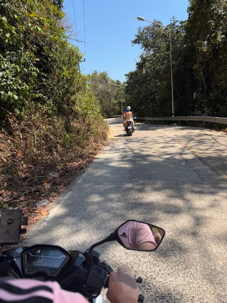 Ja, sammenlignet med mange andre steder i Thailand er det roligere trafikk her. Men du må fortsatt være forsiktig – spesielt i bratte bakker som ved nasjonalparken. Sjekk alltid bremsene før du kjører.