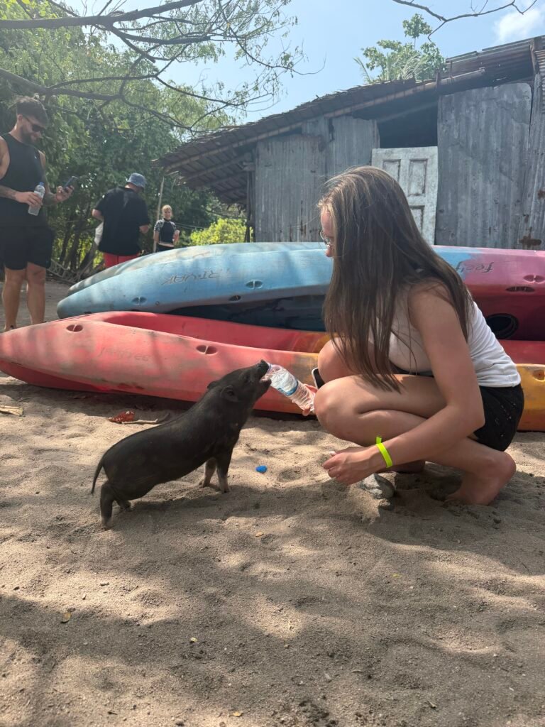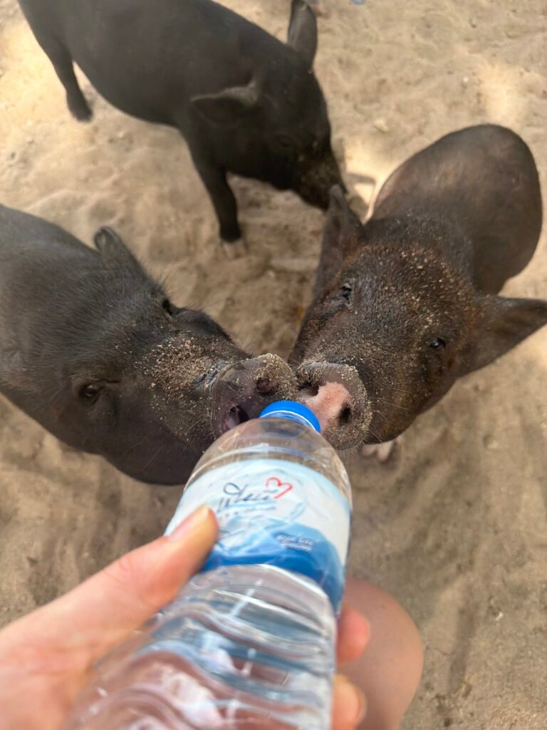 Det er viktig å være klar over at det ikke er garantert å se delfinene. På vår tur måtte vi vente en stund før noe dukket opp, men til gjengjeld så vi både skilpadder og vanlige delfiner. Uansett er selve opplevelsen verdt det – det å mate grisene på stranden, kombinert med snorkling og muligheten for å se delfiner, gjør dette til en av de mest komplette dagsturene du kan gjøre fra øya.
