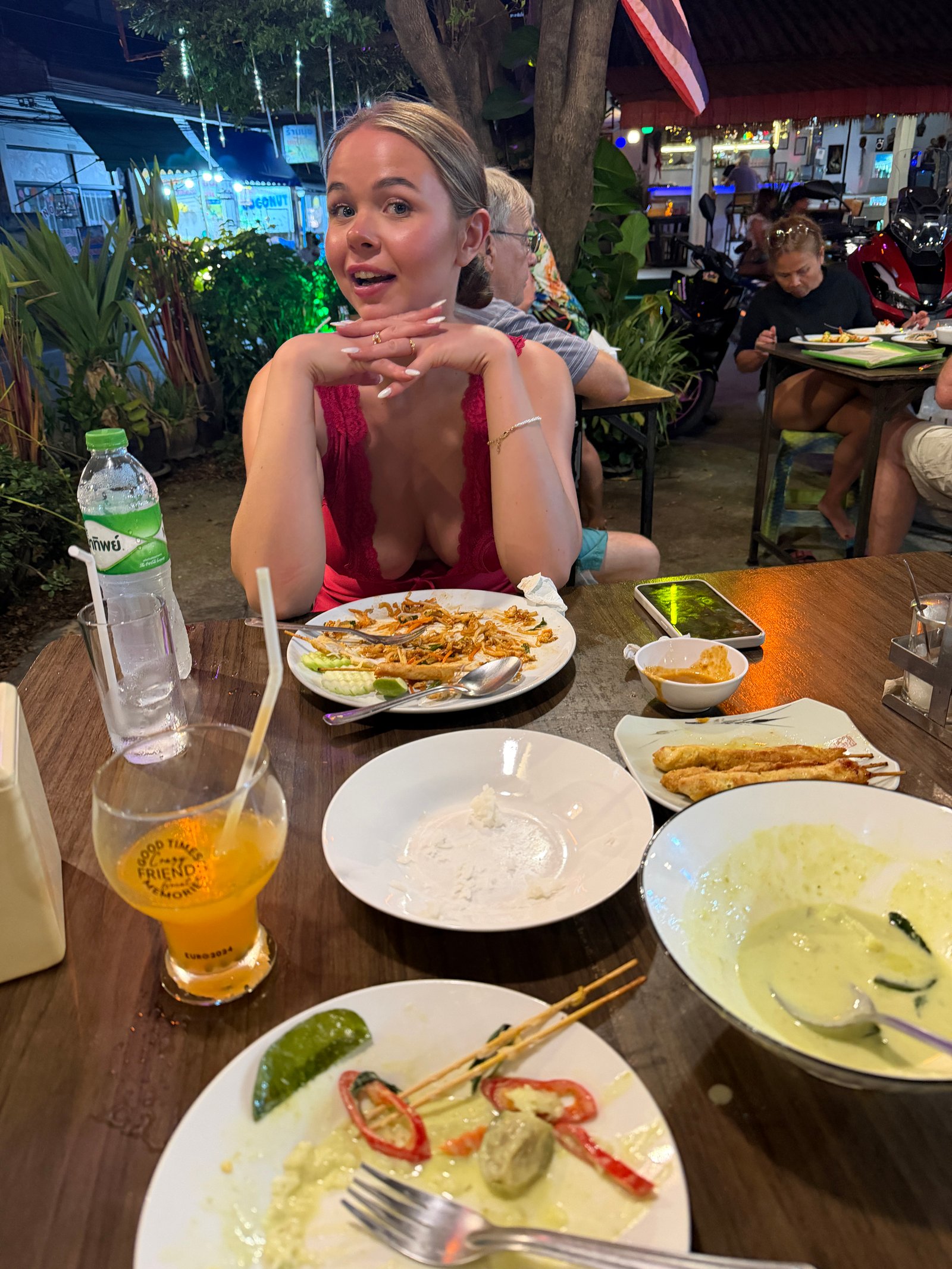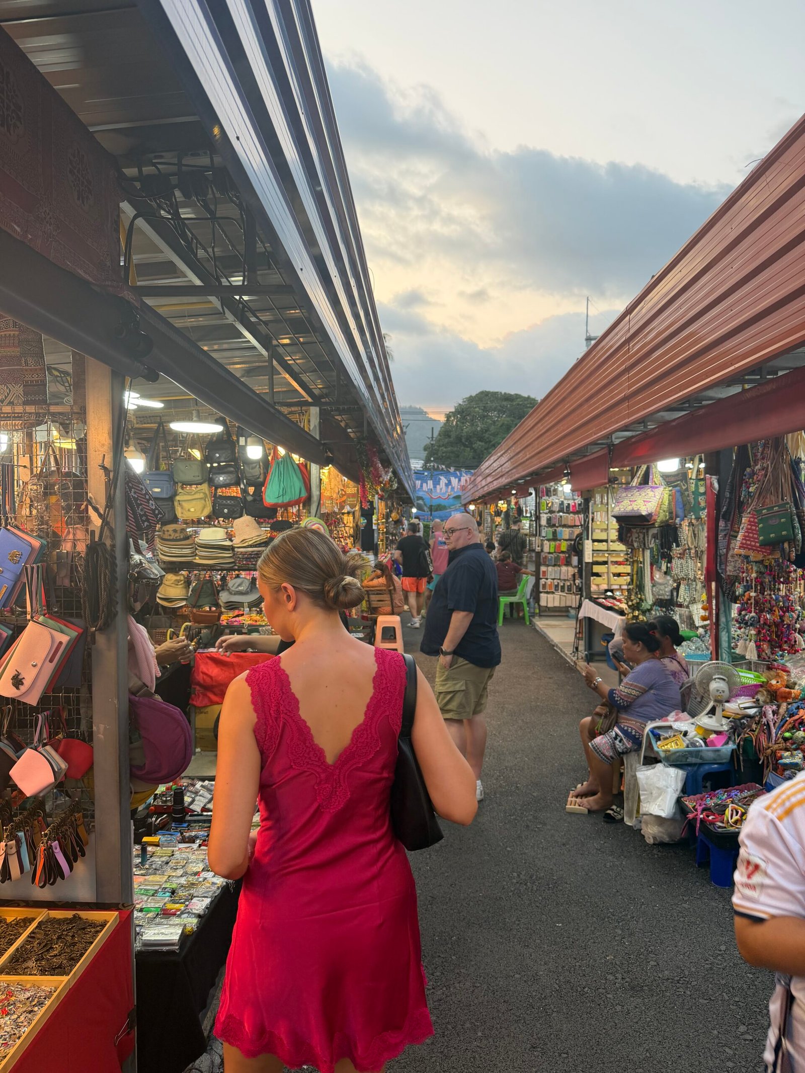 I området finner du også et lokalt nattmarked med mye forskjellig street food. Her er det ofte mye folk og god stemning, og du får alt fra enkle retter til desserter – mango sticky rice er spesielt verdt å prøve.