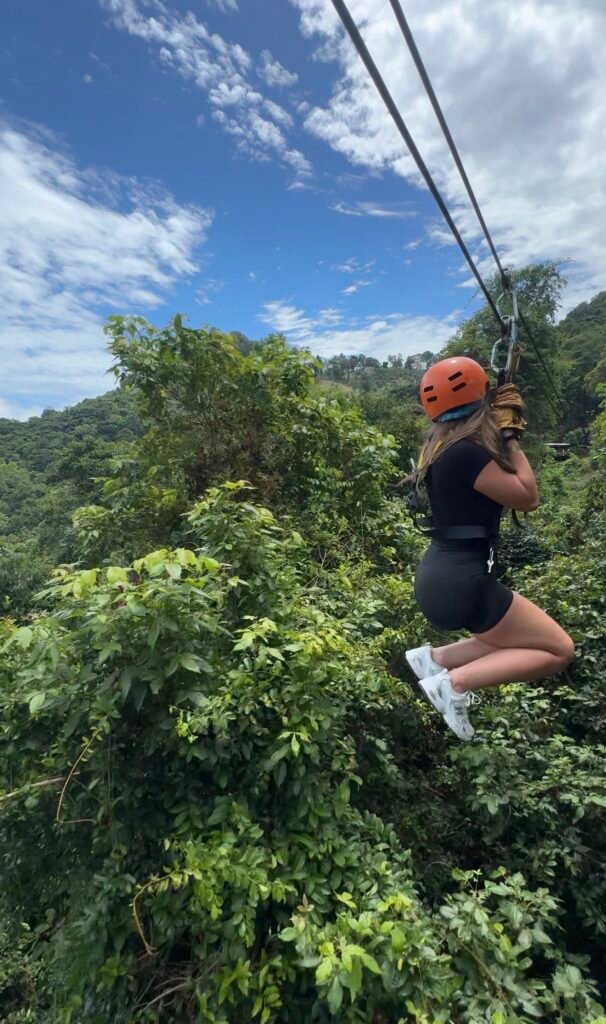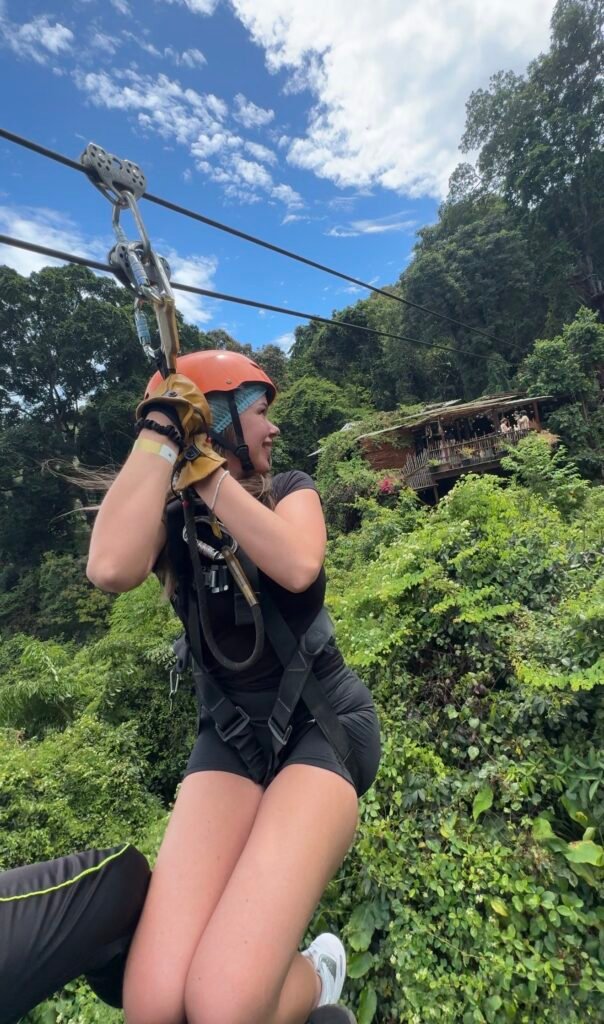 Zipline var en av de gøyeste aktivitetene på Koh Samui, og gir deg en helt annen opplevelse av øya enn bare strand og basseng. Du beveger deg gjennom tretoppene med utsikt over jungel og hav. Vi booket vår tur gjennom GetYourGuide og fikk da også henting og levering hjemme inkludert.